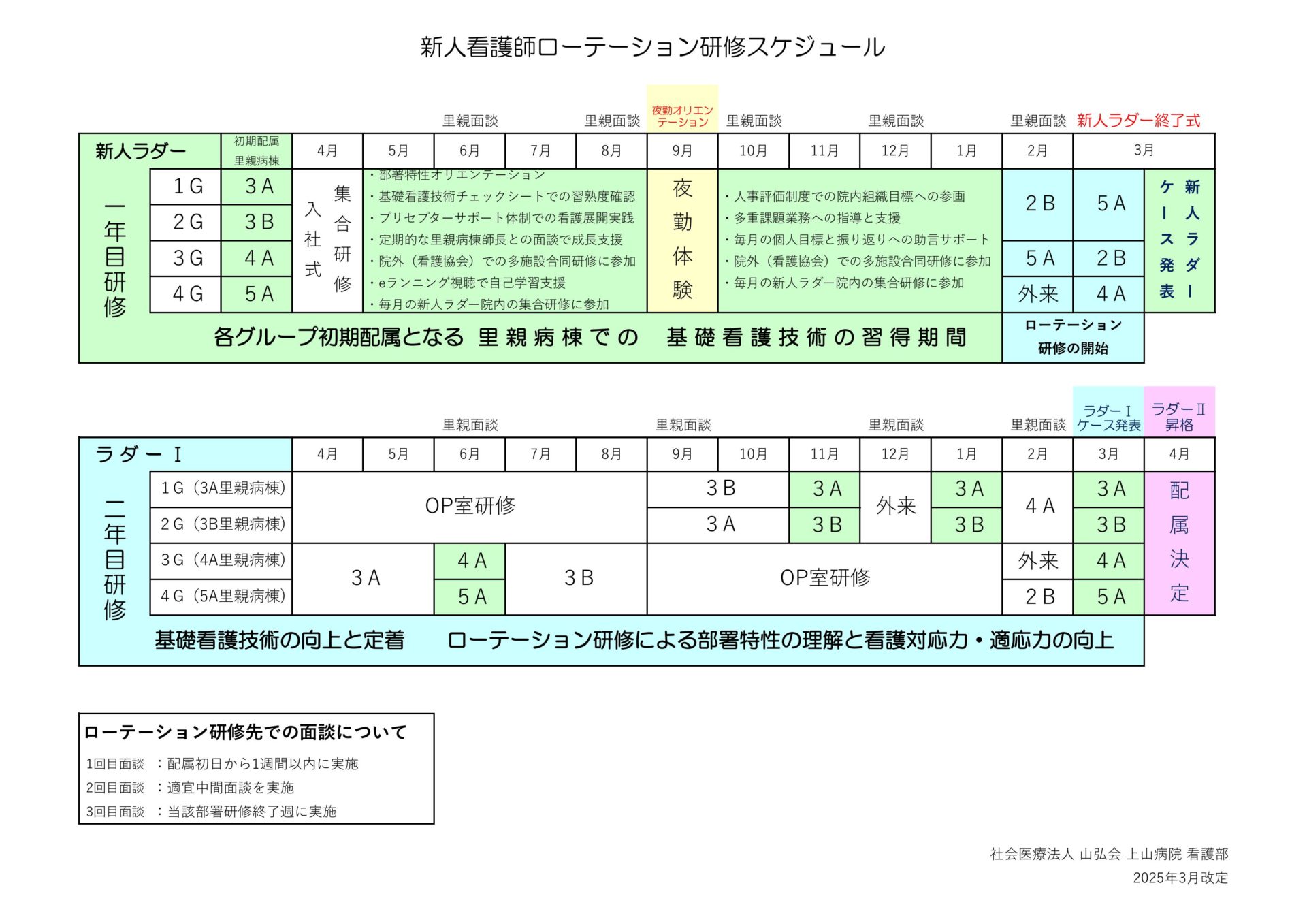 院内での年間教育スケジュールに基づき、ラダー教育を実践しています。